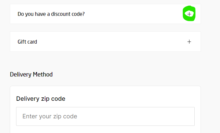 At the top of the checkout, you enter your discount code and to bring up the field to enter the code, you click on the plus on the right.